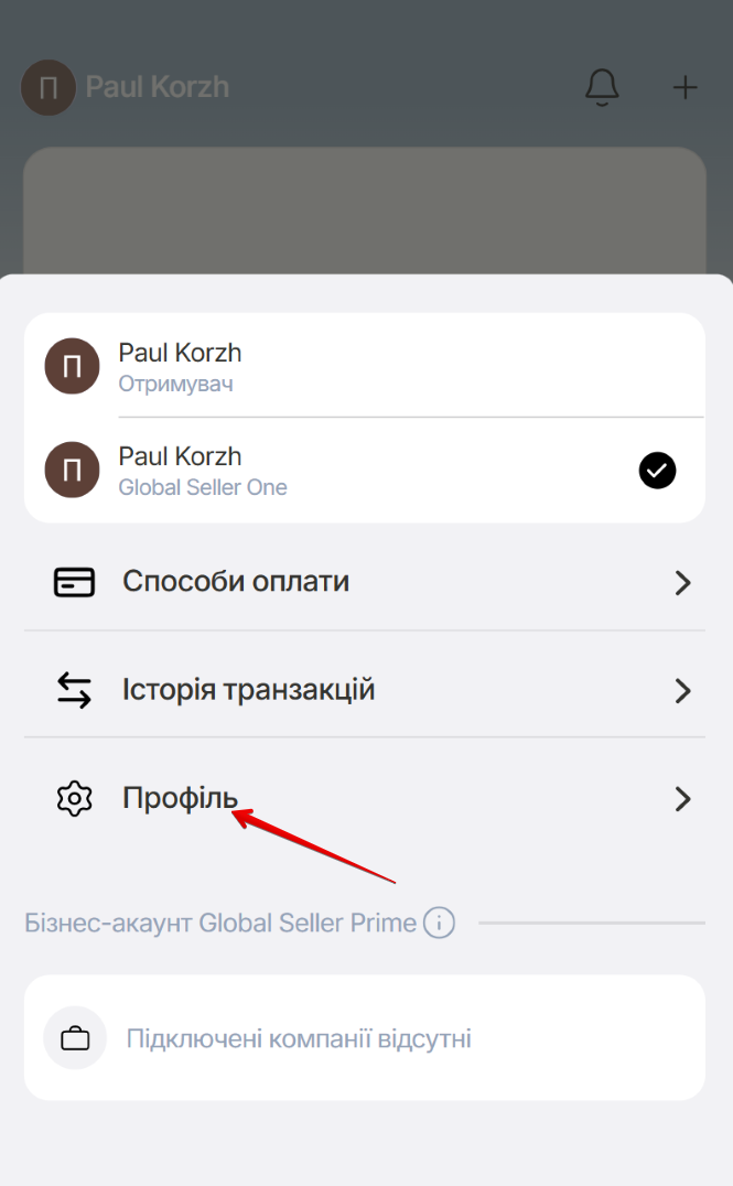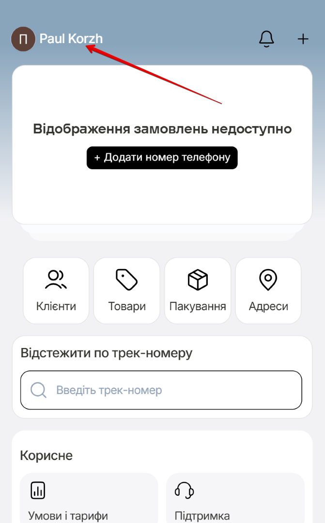На головній сторінці Інтерфейсу натисніть на кнопку імені власника облікового запису