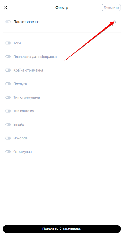 2Останні 7 днівВідобразити відправлення за останні 7 днів