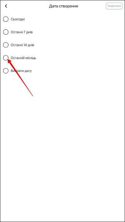 Щоб переглянути чернетки за певний період в десктопній версії - натисніть кнопку Дата створення. В спливаючому вікні стануть доступними: