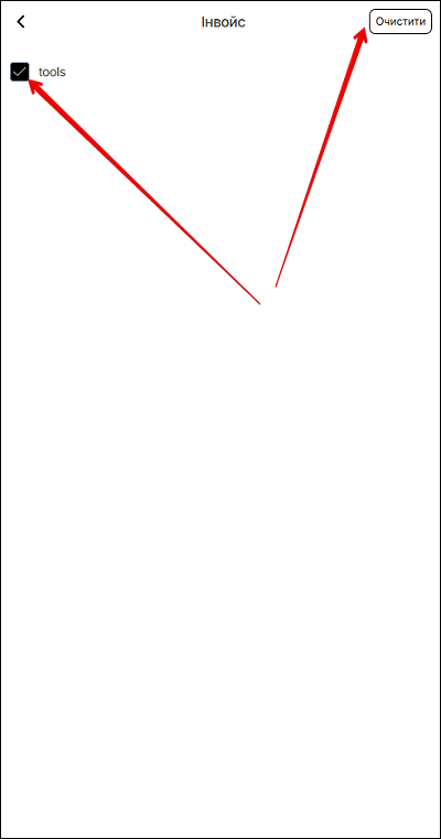 На сторінці обраного фільтру поставьте позначку в чек боксі шаблону товару (раніше внесені в інвойсі). Щоб очистити пошук за цим фільтром - натисніть кнопку Очистити.