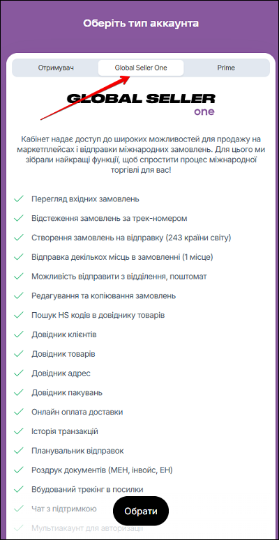 Щоб увійти в акаунт Seller One бізнес-кабінету - натисніть кнопку Global Seller One. На цій сторінці можна переглянути список можливостей цього кабінету.