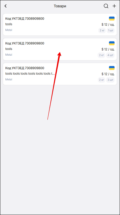 Сторінка Товари є інформаційним довідником, де зберігаються раніше сформавані дані про товар. Щоб перейти на сторінку довідника Товари - натисніть кнопку Товари.
