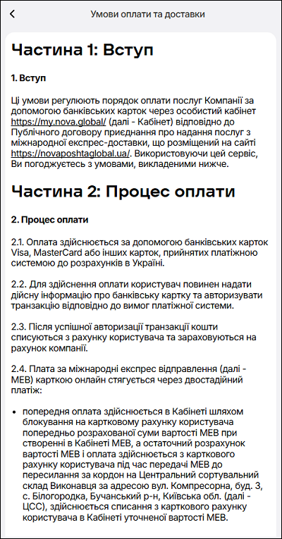 Щоб ознайомитися з Умовами оплати та доставки - перейдіть за посиланням. Відкриється сторінка з інформацією про умови оплати та доставки.