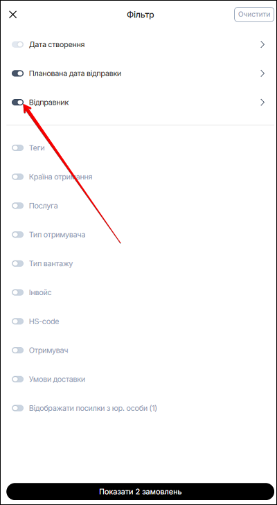2Останні 7 днівВідобразити відправлення за останні 7 днів