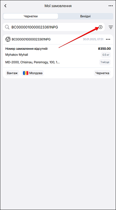 Щоб скасувати пошук чернеток за номером МЕН - натисніть іконку ✖️.