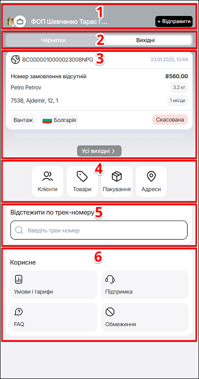 • 3Інформаційне полеМістить інформацію про замовлення, та дозволяє перейти до усіх замовлень