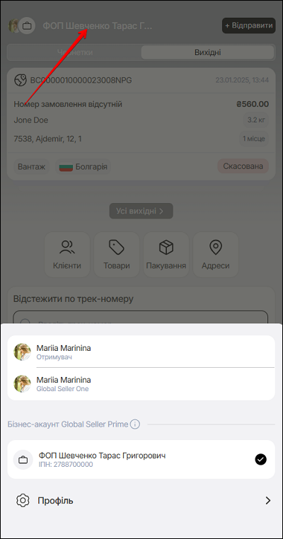 На сторінці бізнес-акаунту Global Seller Prime, якщо натиснути кнопку Профіль - відкриється вікно, яке дозволяє: