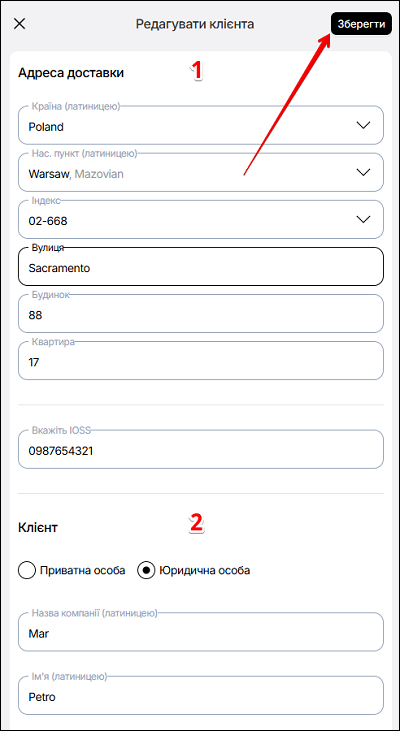 Щоб зберегти змінену інформацію про дані клієнта - натисніть кнопку Зберегти.