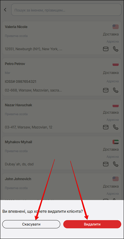 Інформацію про клієнта можна редагувати або видалити. Натисніть поле з інформацією обраного клієнта.