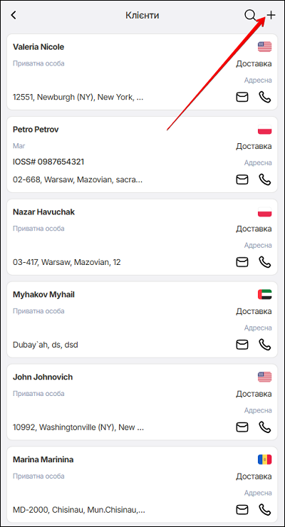 На сторінці Клієнти монжа додати нового клієнта - натисніть іконку ➕.