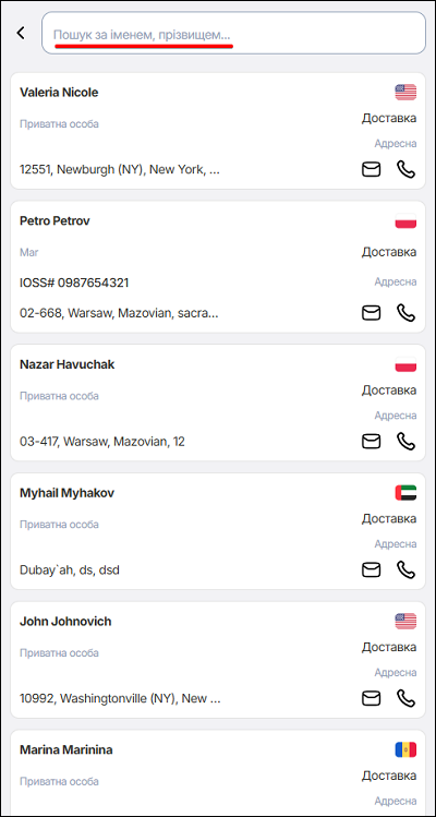 На сторінці Клієнти можна вести пошук за: