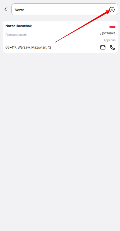- електронною поштою. У полі пошуку введіть дані клієнта.