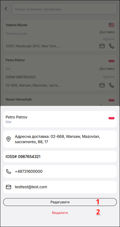 Інформацію про клієнта можна редагувати або видалити. Натисніть на три крапки у кіньці рядка, та у спливаючому вікні натисніть кнопку Редагувати/Видалити, відповідно дії.
