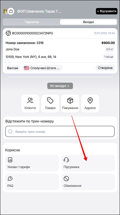Щоб звернутися до служби підтримки - натисніть кнопку Підтримка.