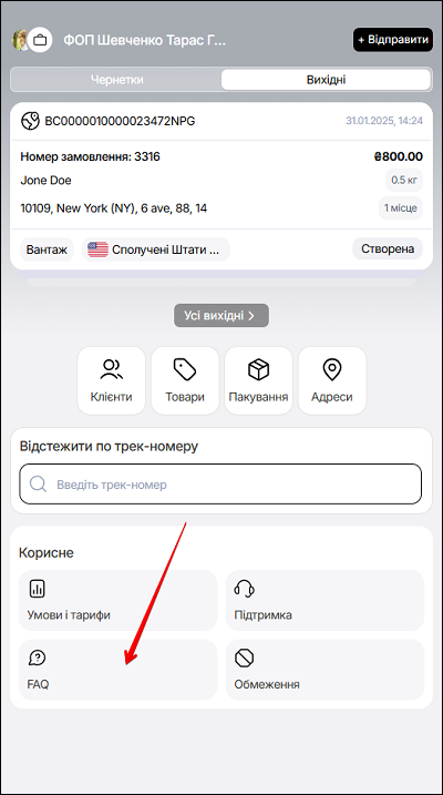 У цьому блоці можна також знайти відповіді на поширені запитання - натисніть поле FAQ. Відкриється сторінка Поширені запитання.