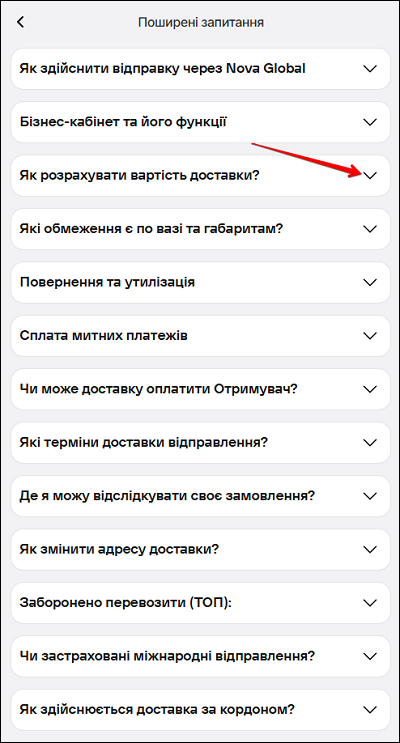 Щоб знайти відповідь на питання зі списку - натисніть іконку Розгорнути. Відкриється детальна відповідь на запитання.