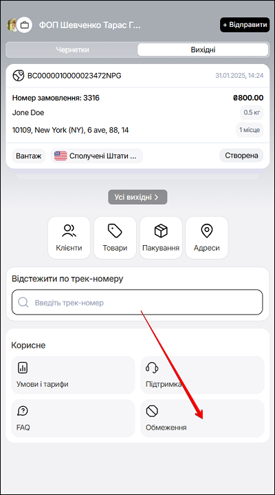 1Обмеження на відправкуДізнатися про умови надання послуг