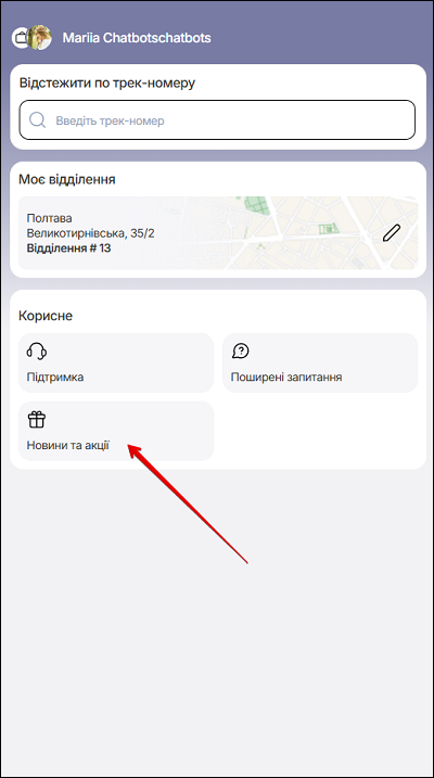 Щоб перейти на сторінку Новини та акції, натисніть відповідне поле.