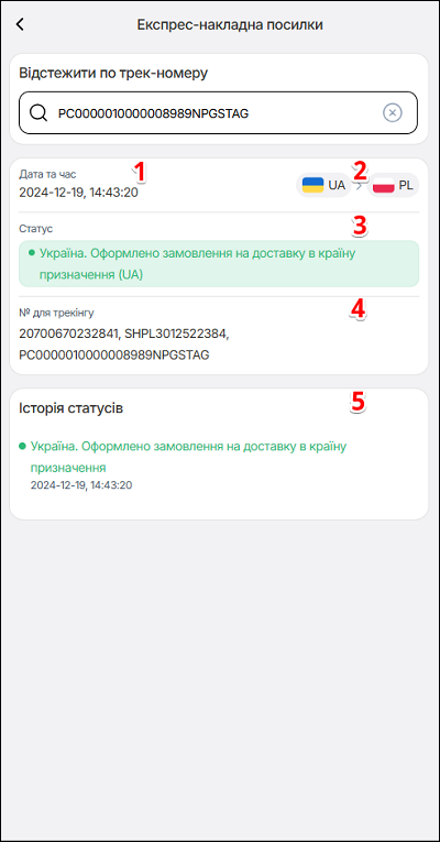 | 4 | № для трекінгу | Висвічується номери для трекінгу |