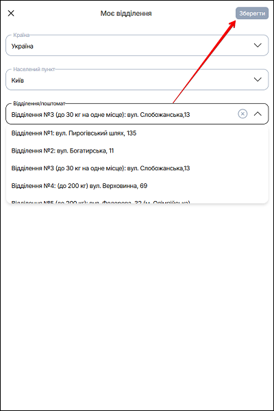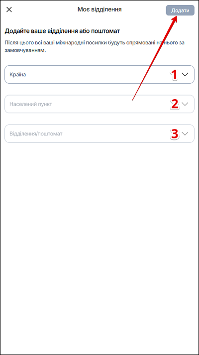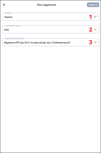 | 3 | Відділення/Поштомат | Додайте відділення або поштомат |