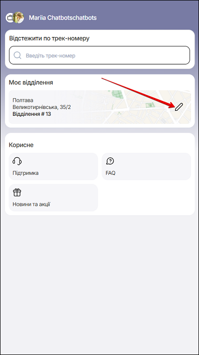 На сторінці Моє відділення можна змінити/відредагувати таку інформацію:
