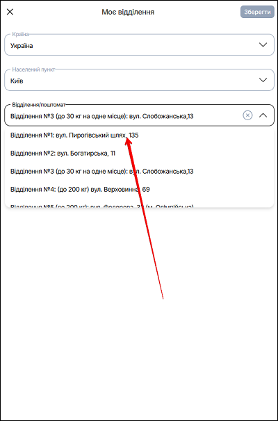 | 3 | Відділення/Поштомат | Указані відділення або поштомат |